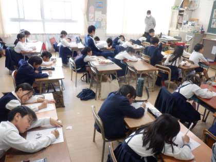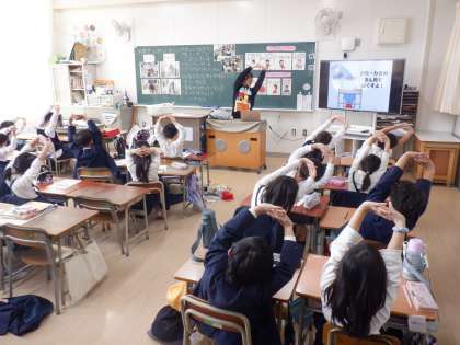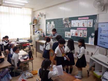 2年1組では教育実習生による保健授業「姿勢チャンピオンになろう」を学習しました。普段の自分の姿勢を振り返ってみたり、写真のようにわざと姿勢を悪くして字を書いてみたりしました。先生が内臓・背骨シャツを着て、姿勢が悪いとどうなるのかも見てよくわかりました。最後には姿勢チャンピオンメダルをもらって大喜びの1組さんでした。これからも姿勢よく過ごしましょうね。