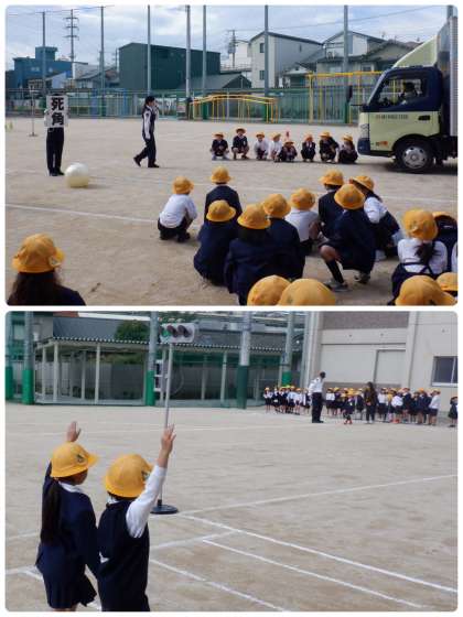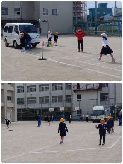 淀川警察交通課、淀川区役所セーフティー淀川のみなさんをお招きして、交通安全教室を行いました。横断歩道や交差点を渡るときの正しい歩き方を学びました。