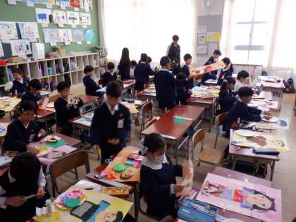 まずは1年生。上から1組・2組の学習のようすです。