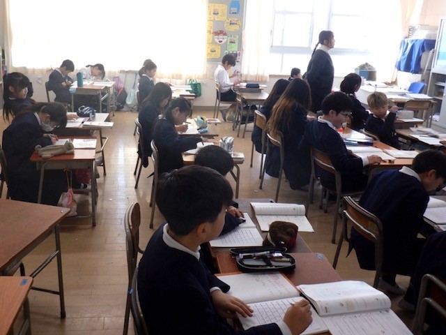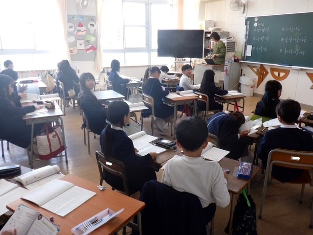 上から2組・3組・4組の学習のようすです。算数の学習は「分数」。「真分数」「仮分数」「帯分数」の意味を知ったり、同分母の分数のたし算やひき算に取り組んでいます。大事な単元です。ご家庭でも復習をお願いします。