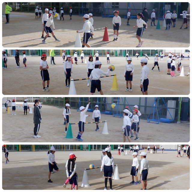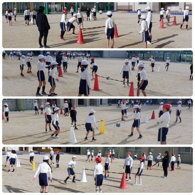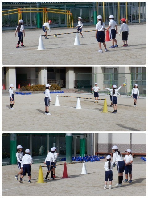 3年生体育の学習は「1組」&「3組」、「2組」&「4組」に分かれて行っています。今日もチームに分かれて「プレルボール」に取り組んでいました。今日も楽しく活動する3年生です。