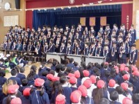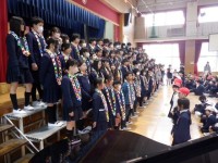 最後は5年1組のみなさんが音楽室からピアノの伴奏に合わせて校歌斉唱。それに合わせて各クラスで校歌斉唱を行いました。5年1組のみなさん、ステキな歌声をありがとう!