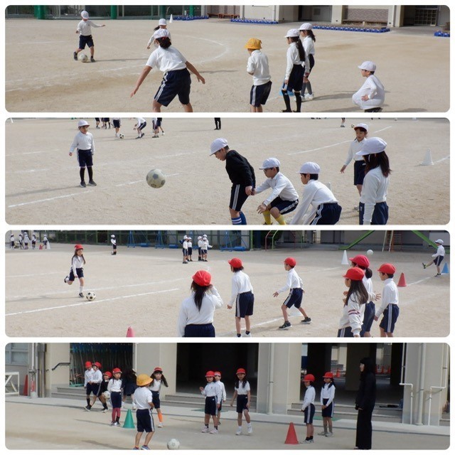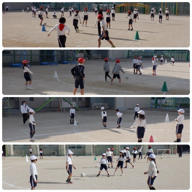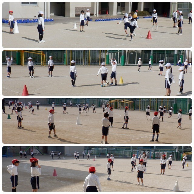 1組と3組、2組と4組に分かれての体育の学習。チームで声をかけ合い、協力しながら取り組んでいました。「+1」を押すと、もう1枚写真が見られます。