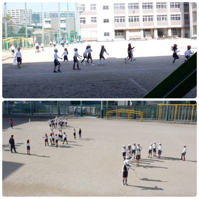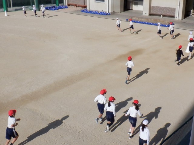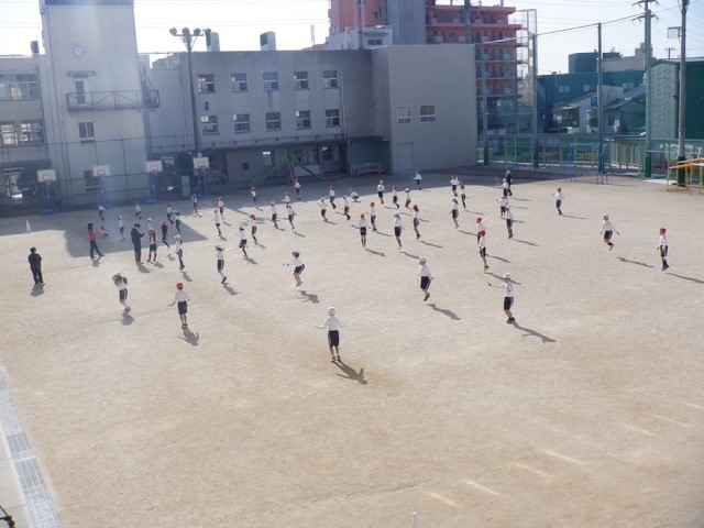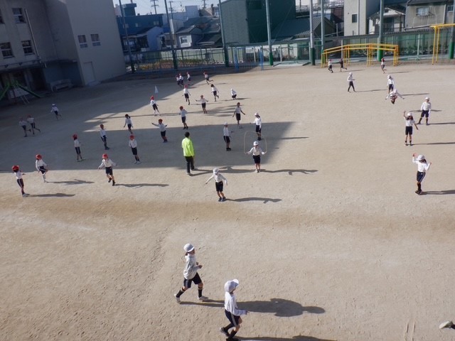 3年生の体育の学習。1組と3組、2組と4組に分かれて、なわとびや持久走などに取り組んでいました。「+1」を押すと、もう1枚写真が見られます。1