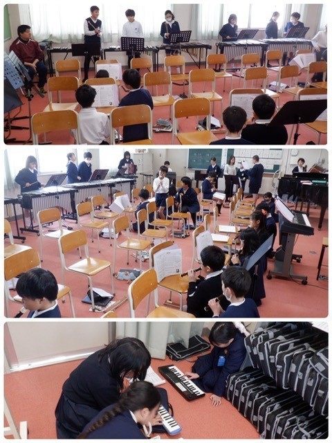 2組音楽の学習は合奏。楽器の役割ごとに集まって練習を重ねていました。心も一つに取り組んでいきましょう。