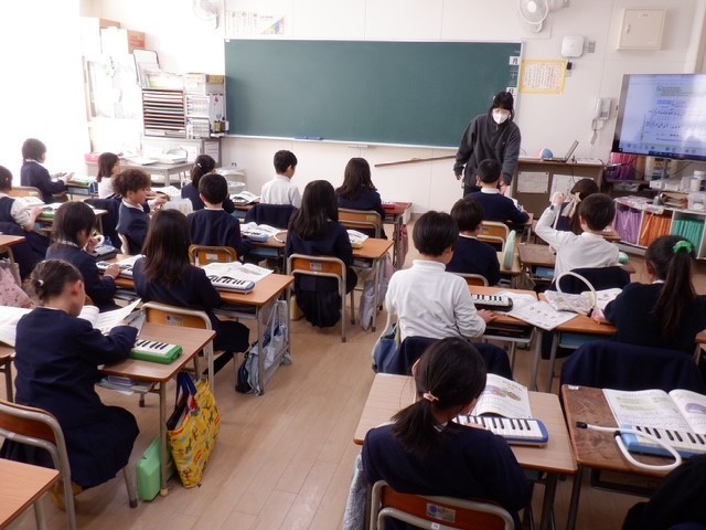 上から1組・2組・4組の学習のようすです。「+1」を押すと、3組の写真が見られます。