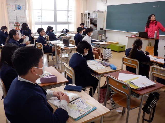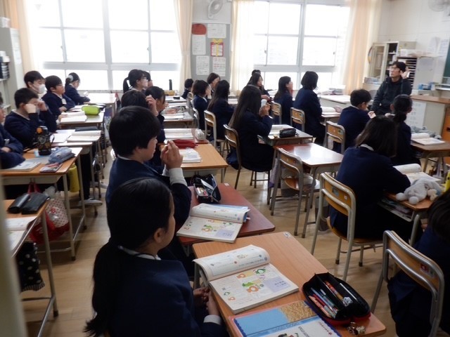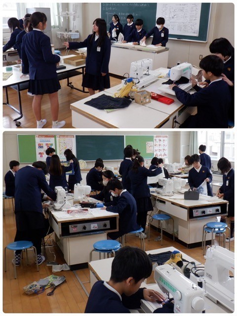 1組家庭科の学習は「ぞうきんづくり」。協力しながらミシンを使って雑巾づくりをしていました。