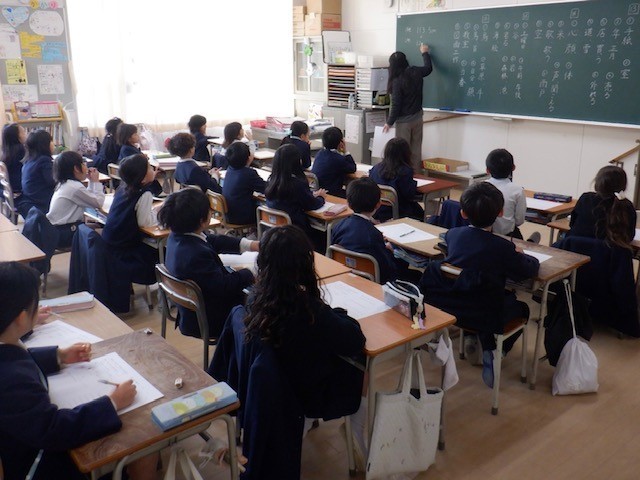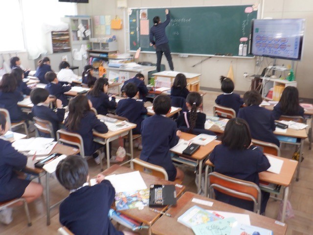 上から1年4組、2年2組、2年4組の学習のようすです。