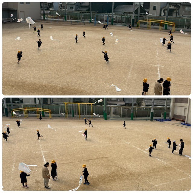 たこあげにも挑戦しました。風もあり、一人一人のたこが空に舞い上がりました!