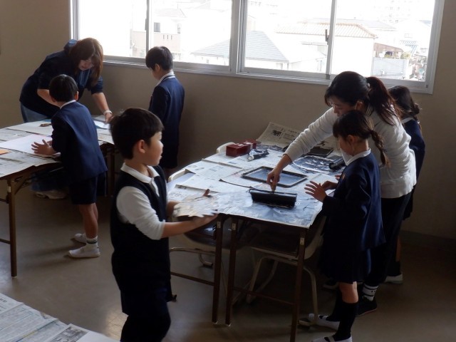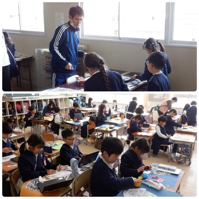 上から1組・2組・3組の学習のようすです。1組・3組図工の学習は紙版画。思い通りの作品になったかな。参観の際にぜひご覧ください。