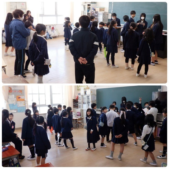 毎週木曜日の児童集会をはじめ、三津屋フェスティバル、全校オリエンテーリングで一緒に過ごしてきた、たてわり班。今日は卒業を控えた6年生が中心となってゲームをするなど楽しい時間を過ごしました。