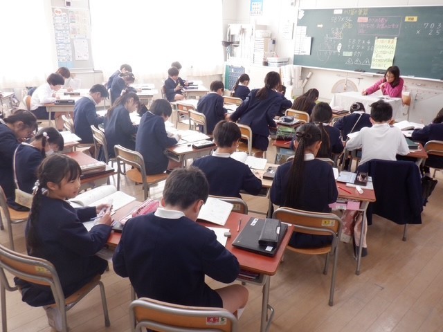 上から1組・3組・4組の学習のようすです。「+1」を押すと、2組の写真が見られます。
