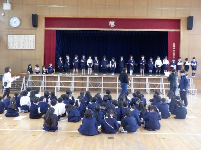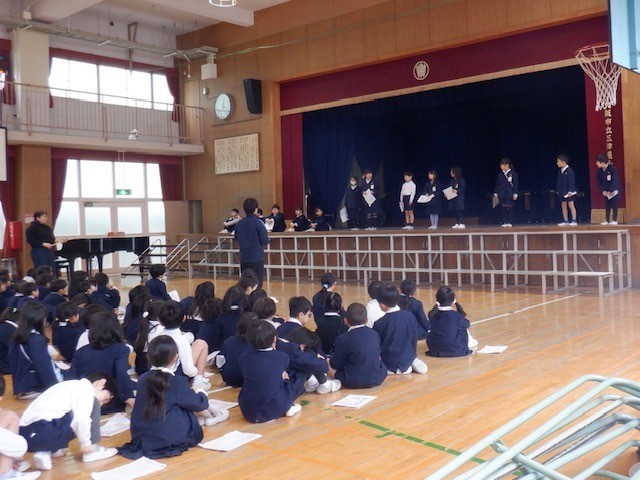 入学式での「お迎えの演技」に向けて1年生がんばっています!