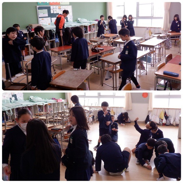 上から1組・2組・3組の学習のようすです。「+1」を押すと、4組の写真が見られます。1組はお楽しみ会、3組は文集づくり、2組と4組は大そうじ。2組と4組のみなさんは教室や廊下だけでなく、講堂のそうじもしてくれていたようです。ありがとう!学校をきれいにしようという気持ちがうれしいです。