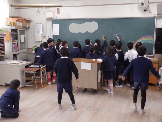 上から1組・3組・4組の学習のようすです。「+2」を押すと、2組と、3組のピカピカ大作戦の写真が見られます。3組と4組はお楽しみ会!盛り上がっていました!1組は子どもたちが担任へサプライズ!先生に階段で待ってもらい、その間に黒板にメッセージを書いていました!担任の先生もうれしかったでしょうね。うらやましい!