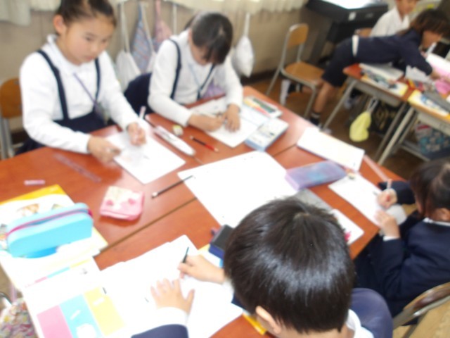 4年生が理科の学習で「ヒョウタン・へちま・ゴーヤ」の種を観察しワークシートに記録していきました。