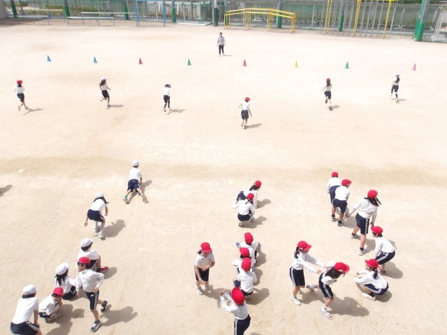 今日は朝からとても良いお天気です!3年生が元気いっぱい運動場で体育をしています。