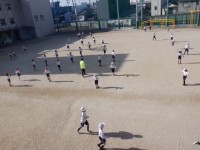 3年生の体育の学習。1組と3組、2組と4組に分かれて、なわとびや持久走など...
