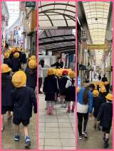 来月に遠足を予定している1年生。今日は神崎川駅方面や学校の南側まで三津屋商店街...