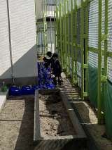 朝のあいさつを終えて校舎に向かうと、なにやら1年生がウロウロ。種を植えた鉢に水...