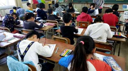 自己紹介カードの似顔絵、丁寧にかいています。似てるかな?