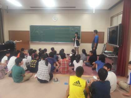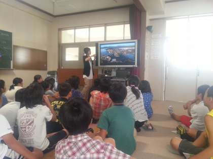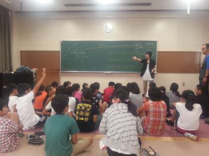 子どもたちは、先生の話す英語の言葉を一生懸命に聞き、また、わかる英語で質問をし、目をキラキラとさせながら、学習していました。