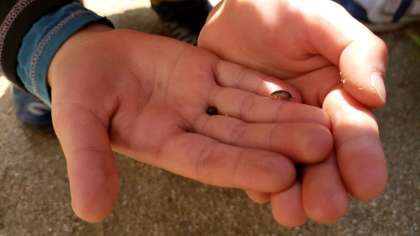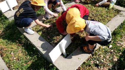 次の栽培に備えて、学習園で草むしりや土の整備をしました。作業中、だんご虫など色々な生き物を見つけました。
