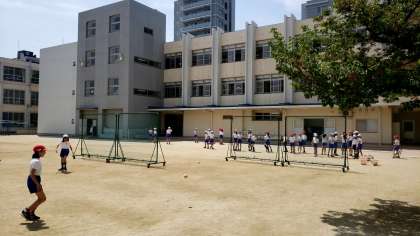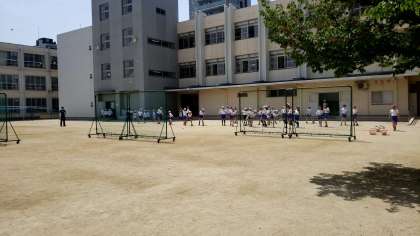 連休明けには、スポーツテストを予定しています。五年生は、それに備えてソフトボール投げの練習に取り組んでいました!