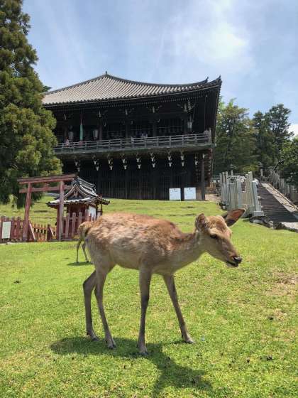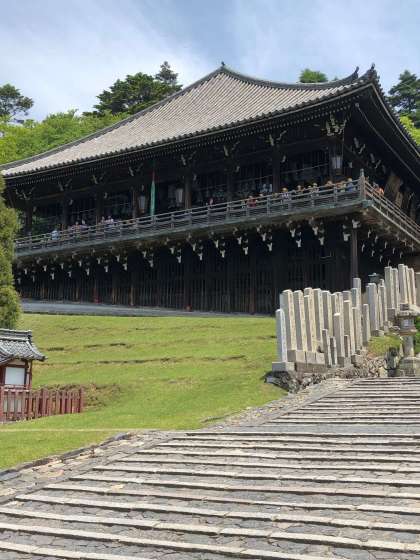 大仏殿での見学のあと、二月堂に向かいました。二月堂の舞台からは、奈良の町が見えました。3月には「お水取り」と呼ばれる行事が行われますが、知っているかなあ。