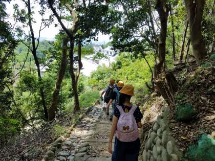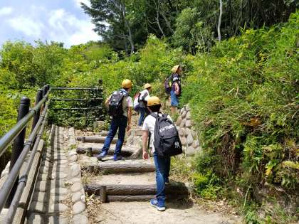 急な坂道ですが、みんなで励まし合いながら頑張って登っています
