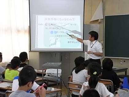 9月11日(木)、理科特別授業がありました。5年生対象に「雲と天気の変化」について、気象予報士の方に来ていただき、授業をすすめてもらいました。