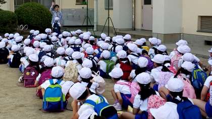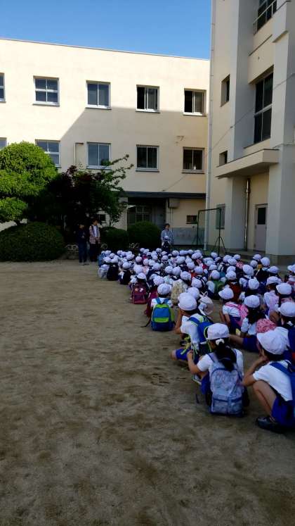 今日は1年生の遠足です。 出発前に先生からのお話。