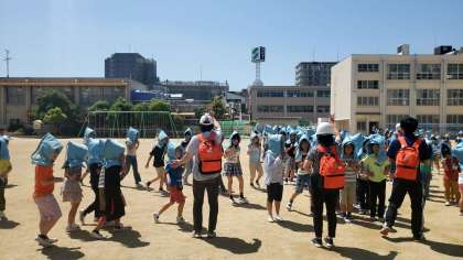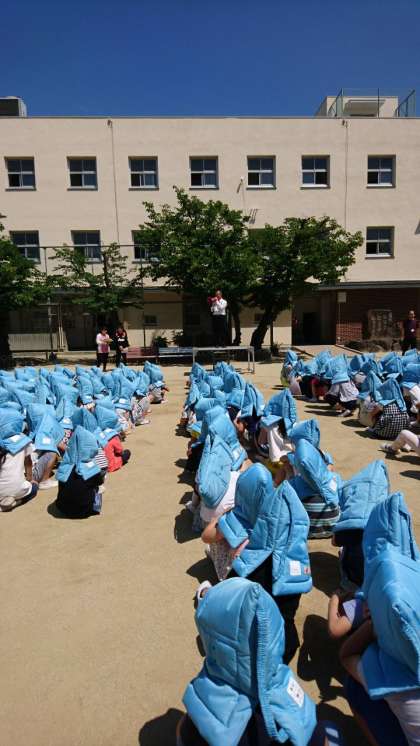 2時間目に地震を想定した避難訓練を行いました。先月に比べると、大変短い時間で避難出来ました。避難の際、先生方が背負っていく防災バックの中身を確認しているクラスもありました。