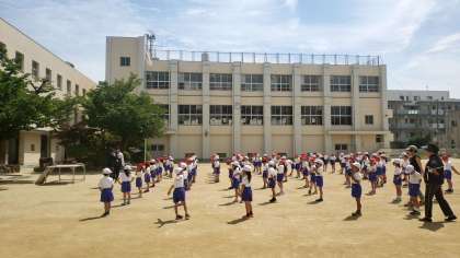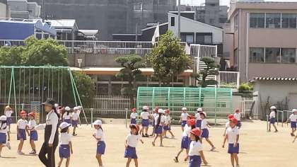 しっかりと準備体操した後は全員で鬼ごっこをしました。