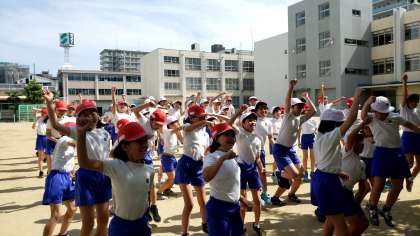 準備体操のあとは、みんなで息を合わせて大きくジャンプ!