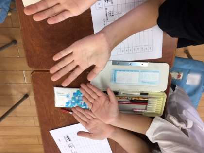 3年生より上の学年は、お隣同士でつめのチェックをします。