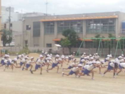毎日、運動場で暑い中運動会の練習をがんばっています。