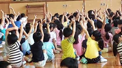 掃除用具の使い方について、クイズ形式でみんなに伝えてくれました
