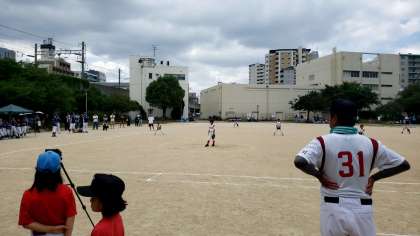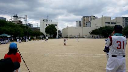 野中南公園にて試合開始。1回戦の対戦相手はお隣の宮原小学校さんです。