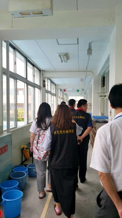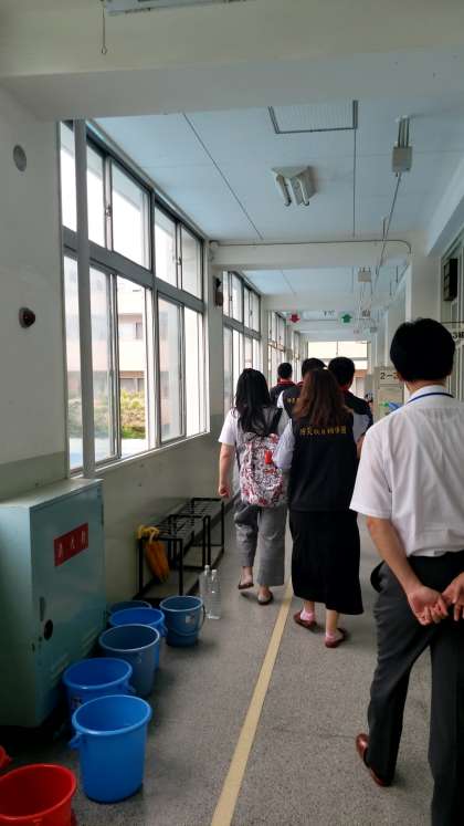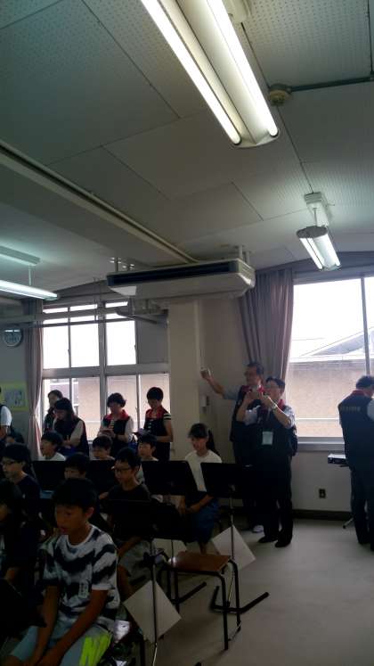校内にある防災や安全にかかわる施設や設備を紹介しました。校内を巡っていると、子ども達も興味深々で、英語や中国語で自分から話しかける子どももいました。