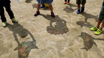 カラーセロハンを通して、太陽の光が美しく輝いています。。タイトルは「光のプレゼント」