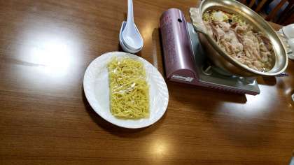 今日の夕食は豚鍋です!〆は、ラーメンです。デザートはスイカです。