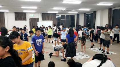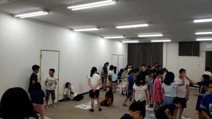 一日目の最後の活動は星空観察でした。でも、あいにくの曇り空の為、室内レクリエーションに変更