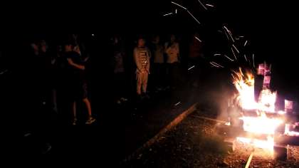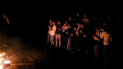 男子と女子に分かれて対抗戦、盛り上がってます。