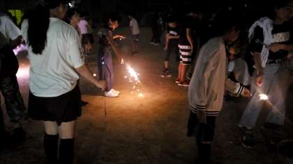 キャンプのしめはやはり花火ですね!