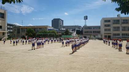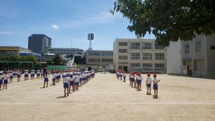 1年生の運動場に出て、運動会の練習です。 小学校生活初めての運動会。みんな頑張ってね!