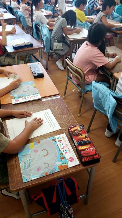 今から、運動会のプログラムの表紙に載せる絵を描きます。全校児童が描き、その中から1枚だけが表紙を飾ることになります。
