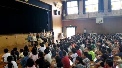 今日は講堂で敬老を祝う会を開催しました。日頃の感謝の気持ちと益々の健康とご活躍を願う気持ちをお伝えしました。
