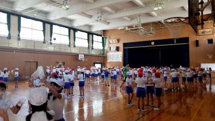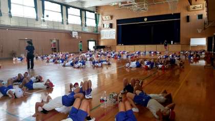 1時間目は、講堂で団体演技の練習です。日差しがない所では、ずいぶんと涼しくなりました。