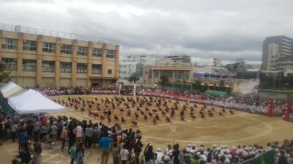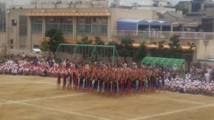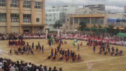 黒のTシャツに長い鉢巻をまいて、集まった状態から、踊りながら少しずつ広がって、優雅な動きを見せてくれました。後半は、「南中ソーラン」で、力強さをしっかりと出して踊りきることができました。